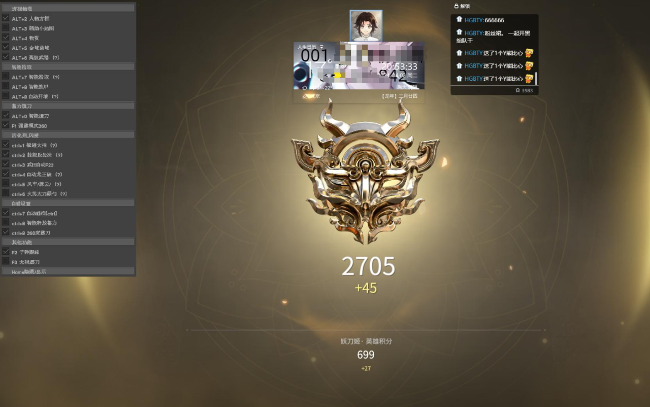 【功能列表】透视+技能显示+走位+gake提示+任意开关