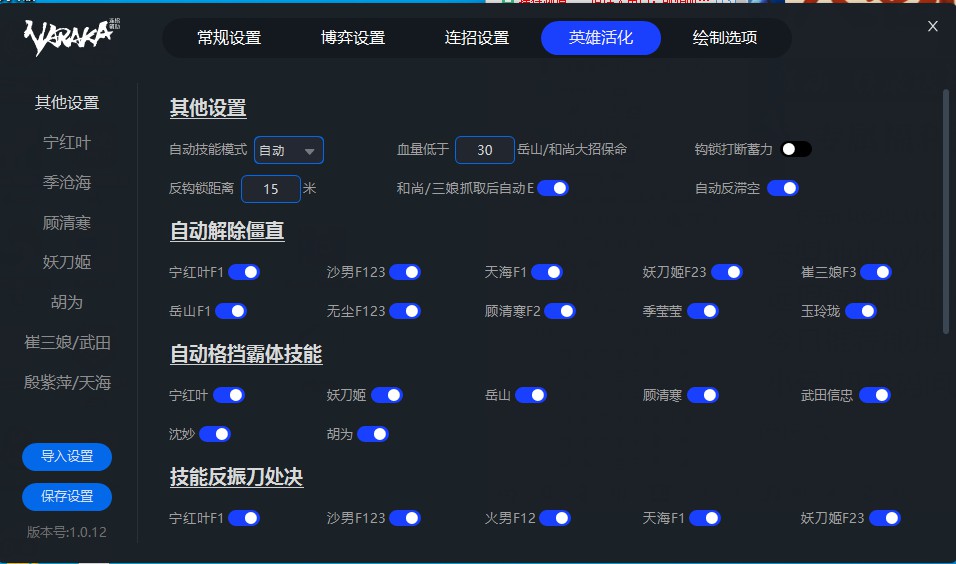 【注意事二】游戏-设置-组合按键调成-开启跟一键振刀 调成默认 才有效